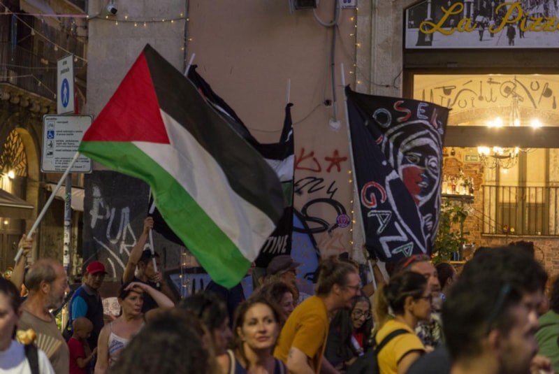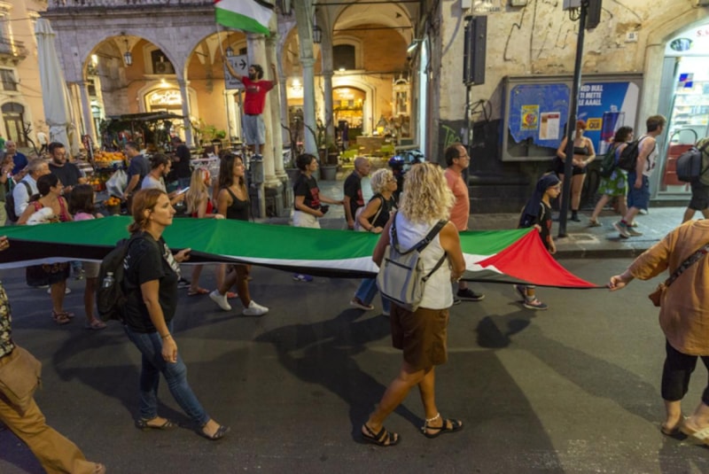 Katanya şehir merkezinde Cali ve Vittorio Emanuele 2 caddeleri ile Duomo Meydanı’ndan geçen kortej, Federico di Svevia Meydanı’ndaki miting alanında sona erdi. Yürüyüş boyunca göstericiler, “Filistin’e özgürlük”, “Soykırımı durdurun”, “Nehirden denize özgür Filistin” ve “İntifada” gibi sloganlar attı.