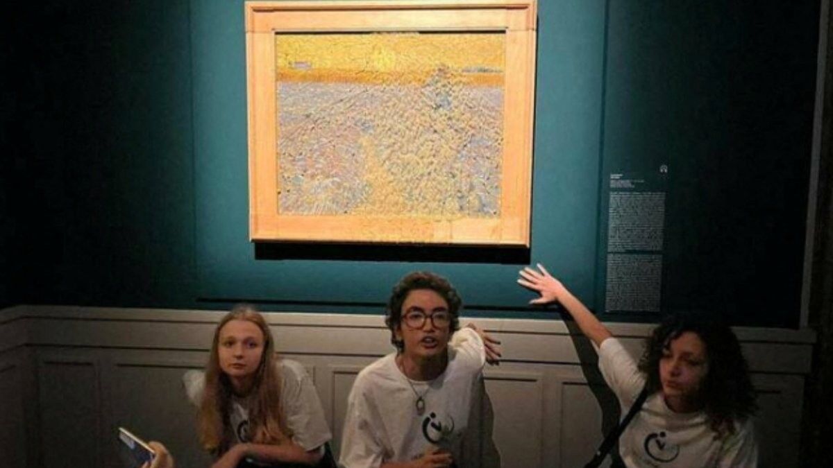 1888 yapımı ünlü tabloya sebze püresi fırlatan aktivistler kendilerini yine duvara bağladı.