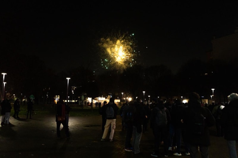 Protestocular sık sık havai fişek atıp meşaleler yakarken, "Özgür Gazze", "Filistin'e özgürlük" şeklinde sloganlar attı.