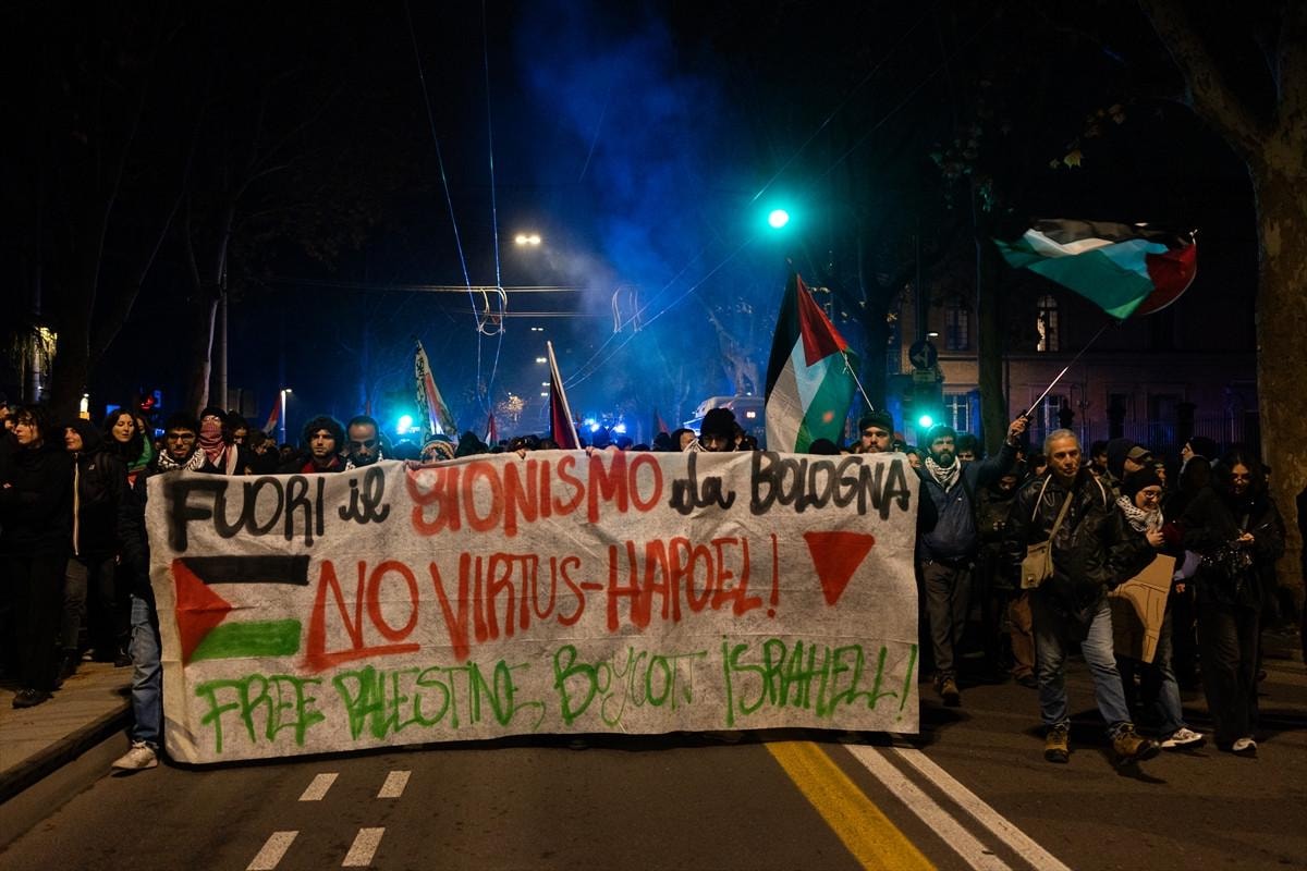 İtalya’nın Bologna kentinde, Basketbol Avrupa Ligi’nin 15. haftasında Virtus Bologna ile Hapoel Tel Aviv arasında oynanacak müsabaka öncesi, konuk İsrail ekibine yönelik protesto gösterileri düzenlendi.
