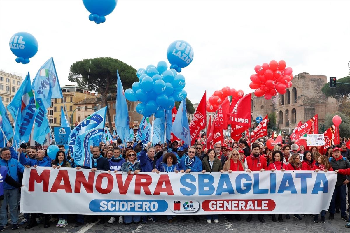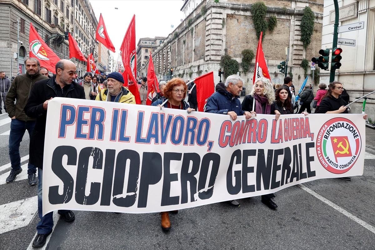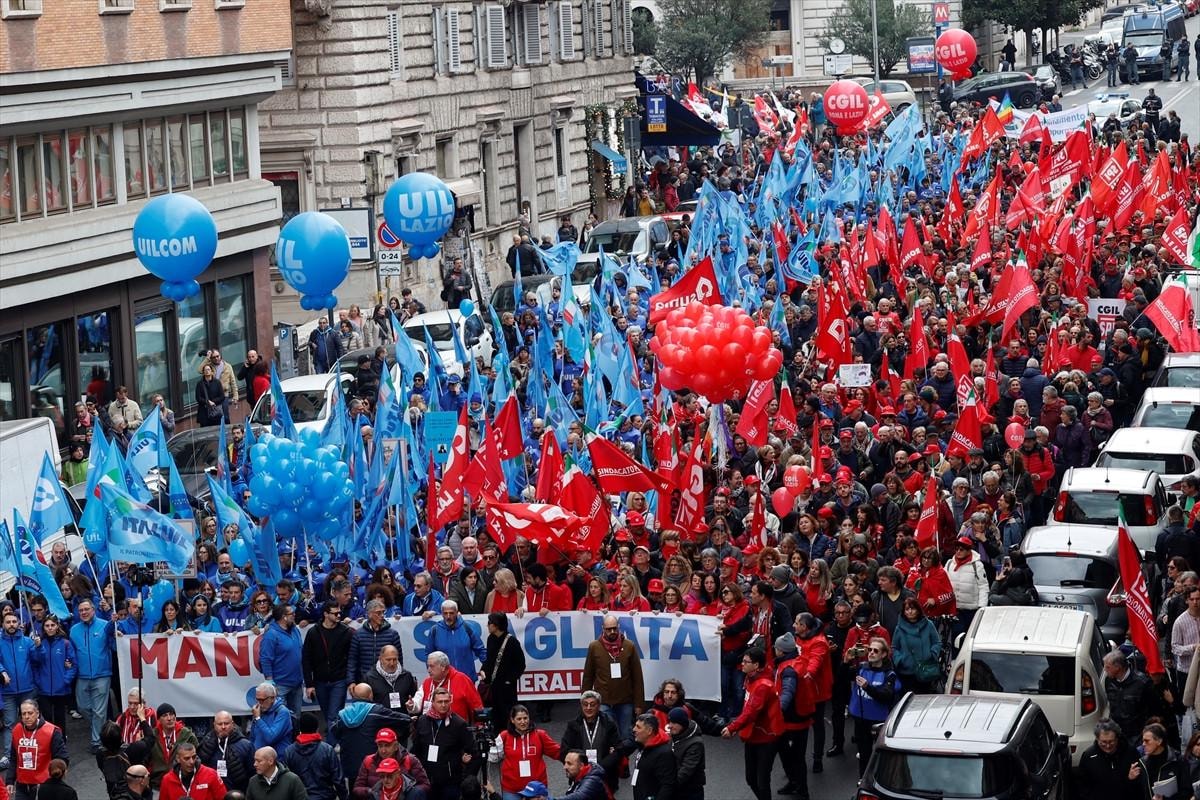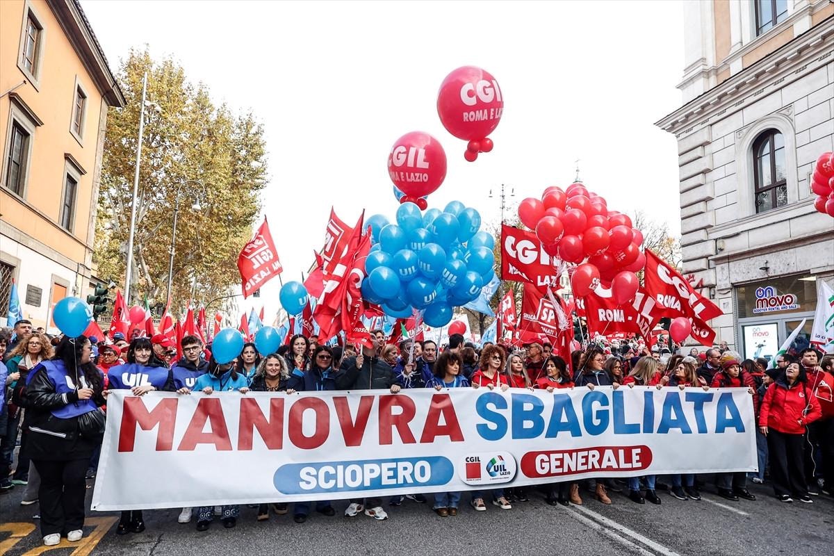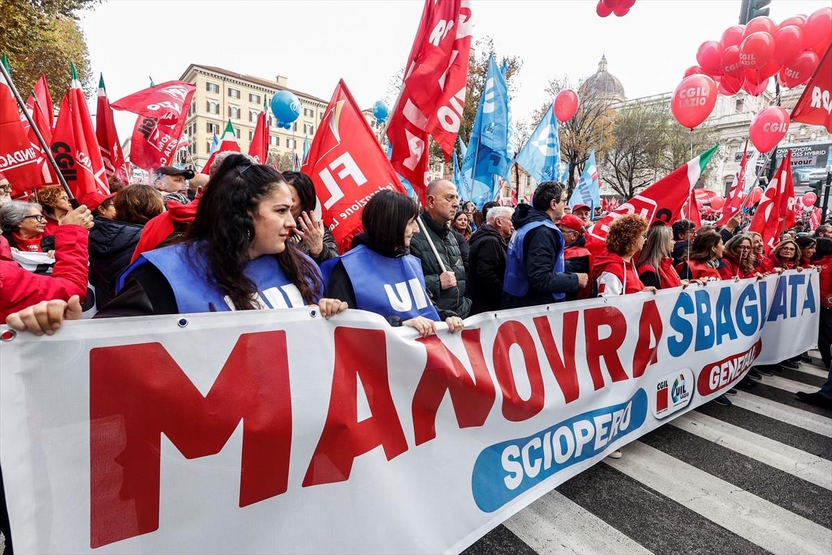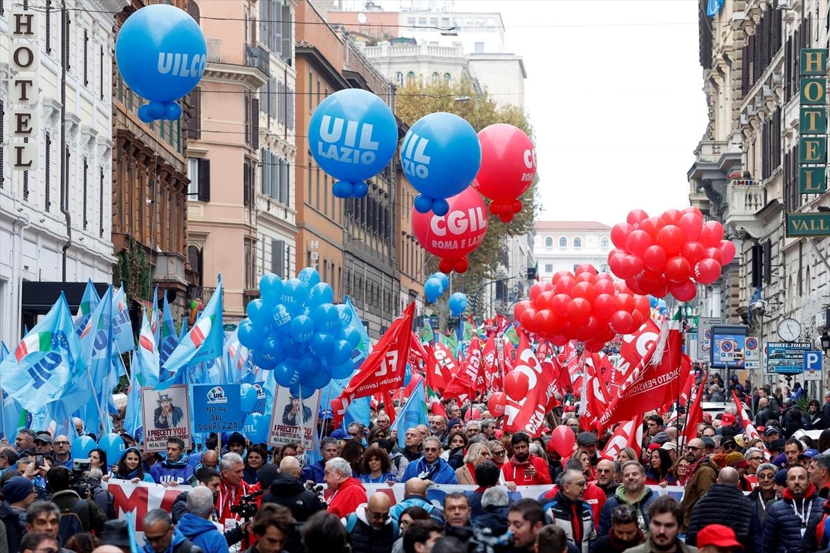 Ülkenin büyük işçi sendikalarından İtalya Genel İş Konfederasyonu (CGIL) ve İtalyan İşçi Birliği'nin (UIL) çağrısıyla, Giorgia Meloni liderliğindeki sağ iktidarın hazırladığı 2025 bütçesi genel greve gidilerek protesto edildi.