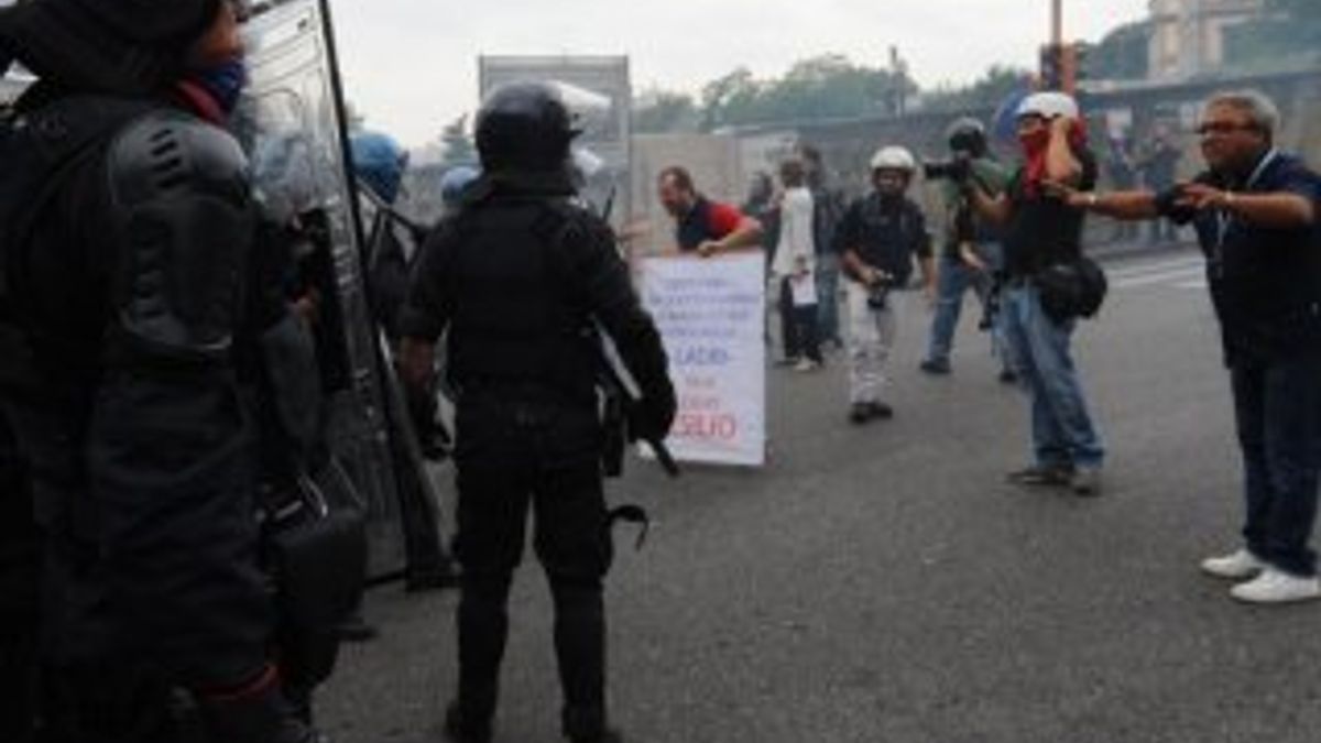 İtalya'da Avrupa Merkez Bankası'nın kemer sıkma politikalarını protesto eden yaklaşık 600 kişiye polis müdahale etti.