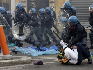 Şehir merkezine kadar olaysız devam eden gösteriler bazı grupların polise sert ve patlayıcı cisimler atmasıyla alevlendi. Göstericilerin polise karşı şişe, yumurta ve havai fişek kullanmasıyla şiddetlenen olaylarda polis ve göstericiler arasında çatışma yaşandı.
