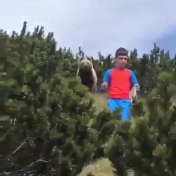 12 yaşındaki Alessandro, boz ayıyı görünce yavaş adımlarla ilerlemeye başladı.