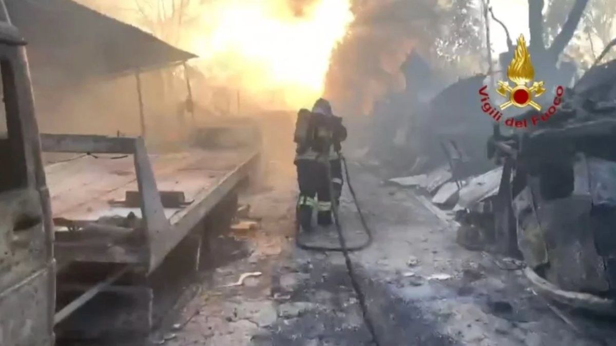 İtalya'nın başkenti Roma'da Centocelle bölgesinde eski araçların park edildiği bir alanda yangın meydana geldi.