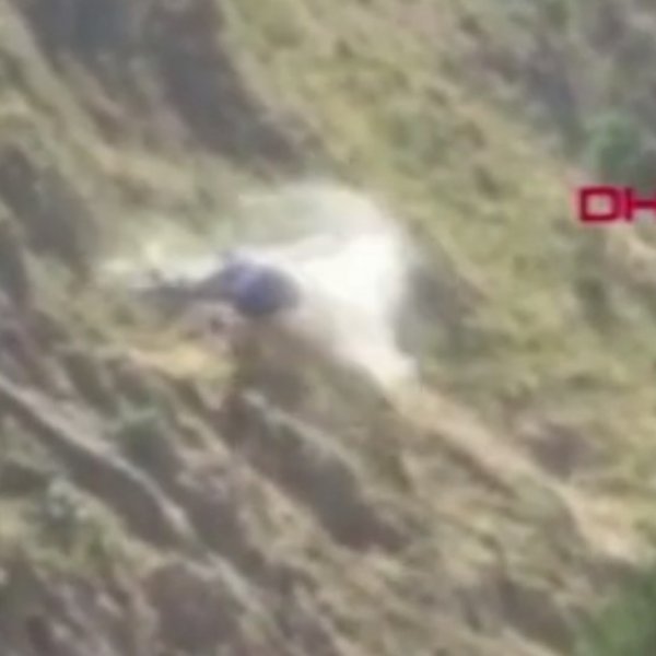 Sosyal medyada yayınlanan görüntülerde, helikopterin yere yaklaştığı ve pervanelerinin kayalara çarptığı görüldü.