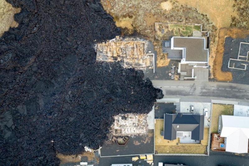 İzlanda'da Reykjanes Yarımadası'ndaki yanardağda dün meydana gelen patlamanın ardından kasabaya ulaşan lavlar havadan görüntülendi.
