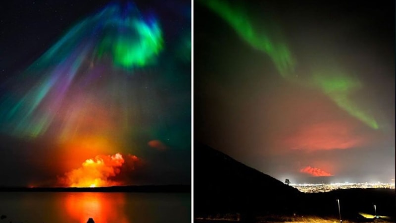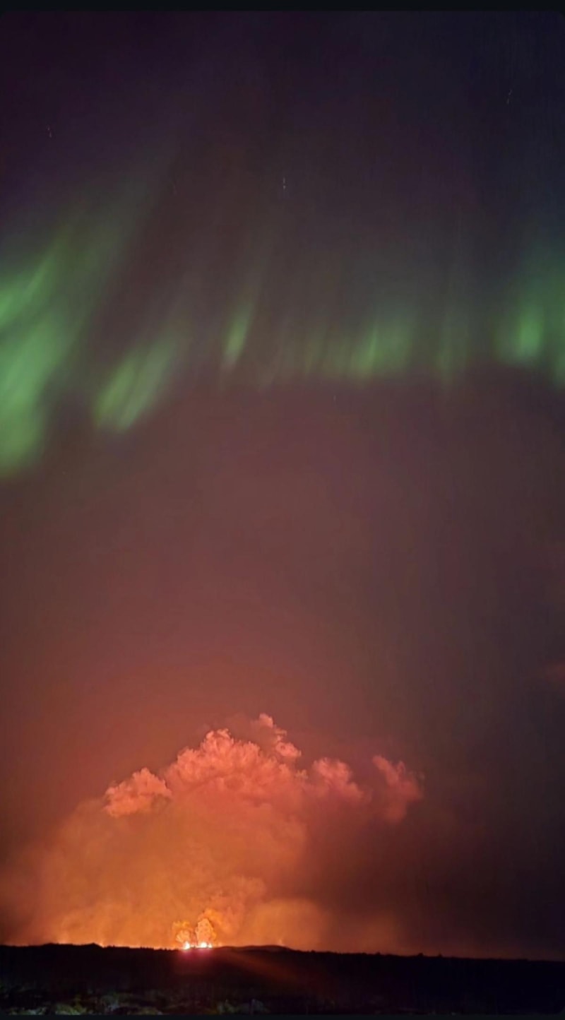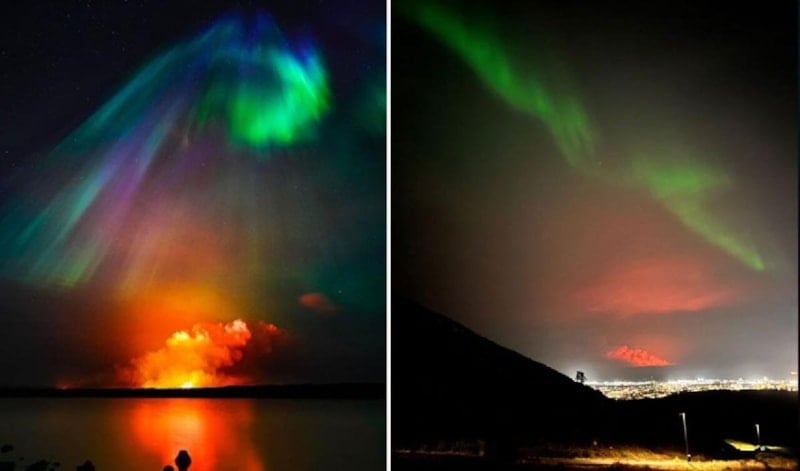 Yanardağ patlaması nedeniyle ortaya çıkan çarpıcı görüntülere bir de kuzey ışıkları eklendi.