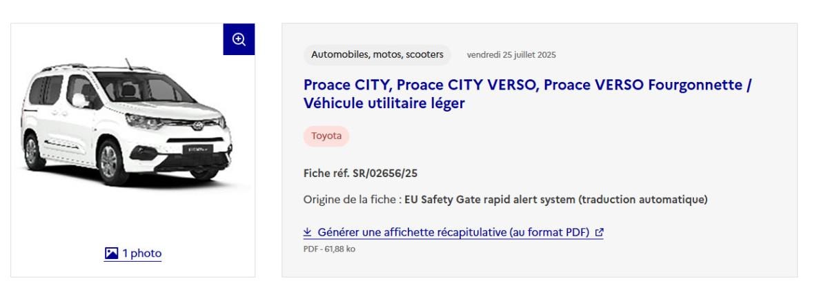Avrupa Birliği’nin hızlı ürün uyarı sistemi RAPEX (Rapid Exchange of Information System) aracılığıyla yayınlanan bilgilere göre, Toyota Proace City modellerinde tespit edilen kritik bir üretim hatası nedeniyle araçların toplatılmasına karar verildi.
