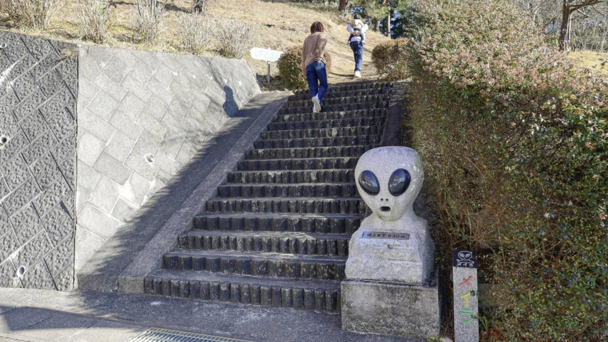 Iinomachi'yi ziyaret edenler, UFO şeklindeki sokak lambaları, otobüs durakları, bayraklar ve hatta bir uzaylı heykeli dahil her yerde dünya dışı yaşamla ilgili nesnelerle karşılaşıyor.