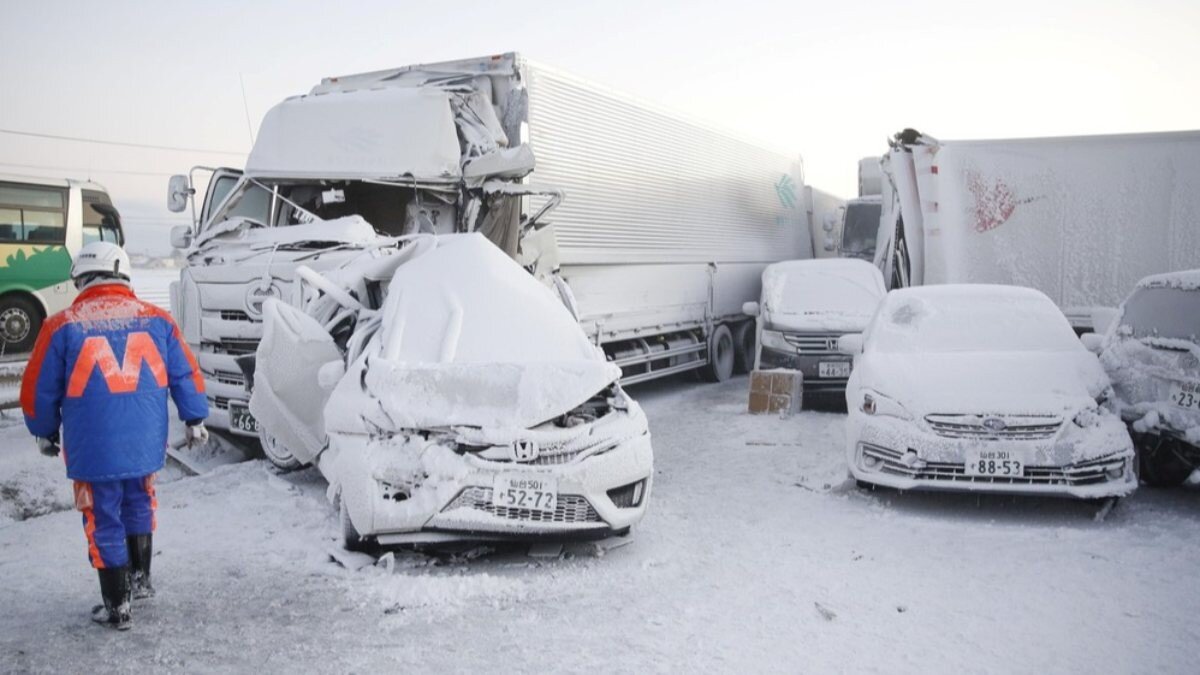 Miyagi eyaletindeki bir otoyolda kar ve buzlanma nedeniyle meydana gelen zincirleme kazada, 130 araç birbirine girdi.