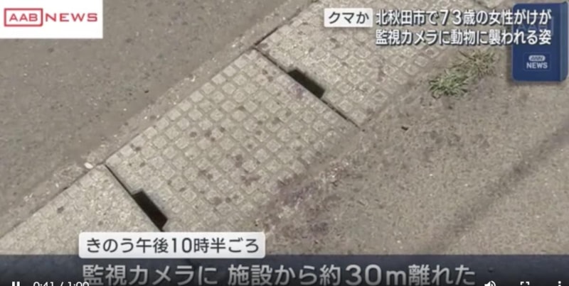 Akita eyaletinde bir bakımevinin önünde baygın ve kanlar içinde bulunan 73 yaşındaki kadına ayı saldırdığı tespit edildi. Yaralı kadın hastaneye kaldırıldı.