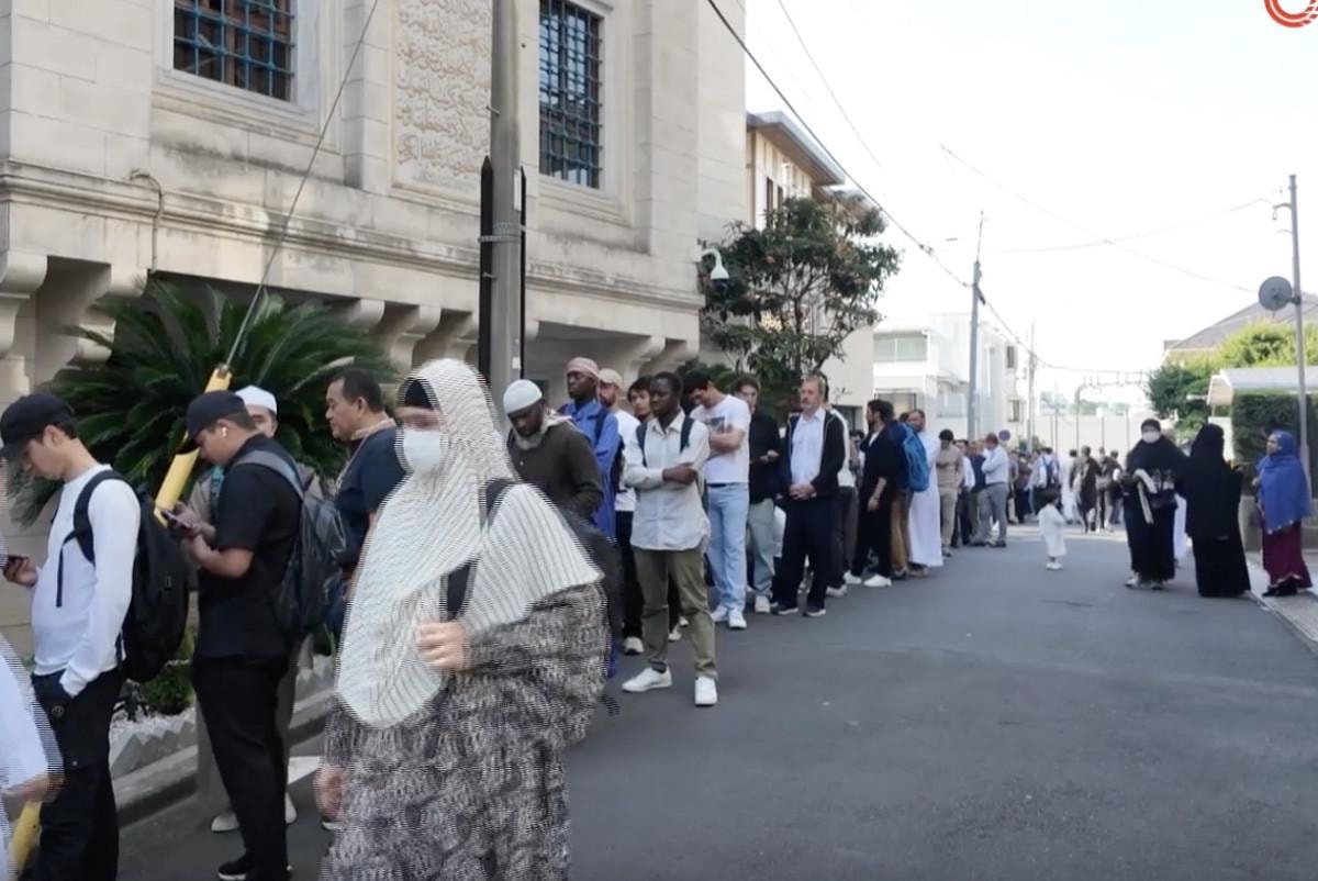 Dünyanın farklı ülkelerinden yüzlerce Müslüman, bayram namazını kılmak için Tokyo Camii’ne akın etti.