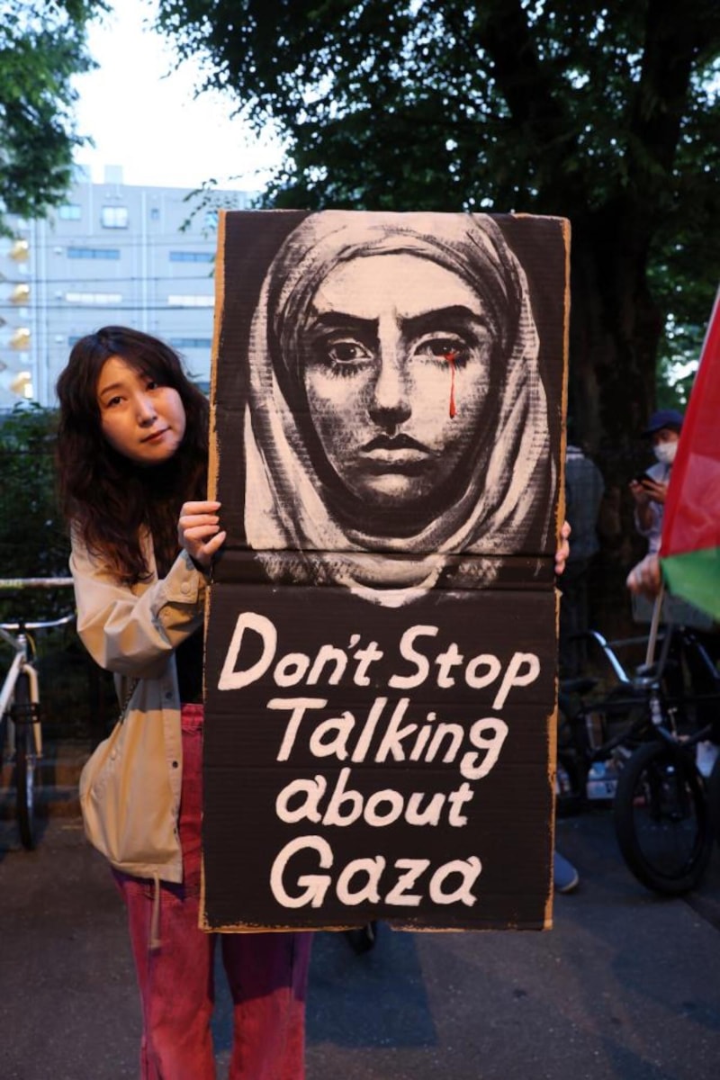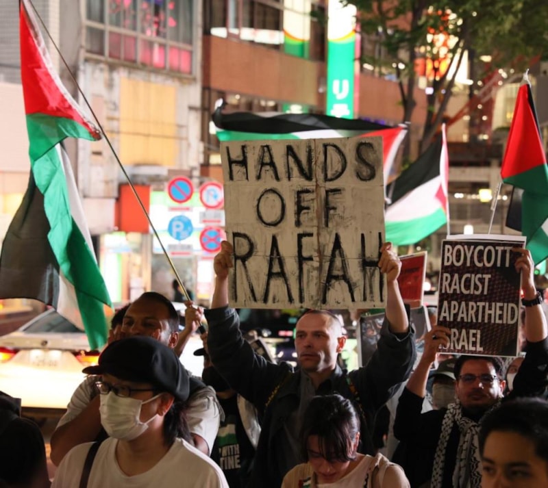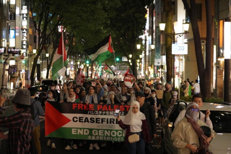 Japonya'da yaşayan Filistinliler tarafından organize edilen yürüyüşe katılan yüzlerce kişi “Soykırımı durdurun”, “Nehirden denize özgür Filistin”, “Gözlerini aç, sesini yükselt”, “Refah'a dokunma” ve “Yaşasın direniş, yaşasın intifada” sloganları atarak İsrail’e tepki gösterdi.