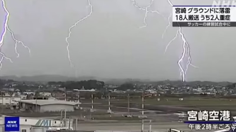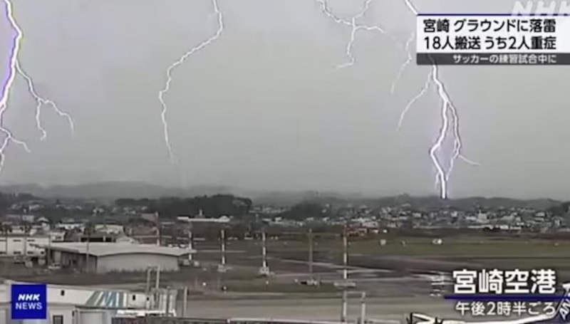 Miyazaki eyaletinde futbol oynayan öğrencilerin üzerine yıldırım düşmesi sonucu 2’si ağır 18 yaralı hastaneye kaldırıldı.
