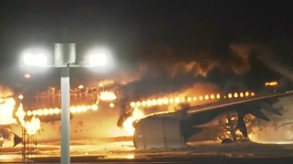 Uluslararası Tokyo Haneda Havalimanı'na inen uçak, sahil güvenlik kurumuna ait bir uçakla çarpıştı.