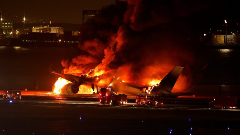 Başkent Tokyo'nun en büyük havalimanında yolcu uçağı ile sahil güvenlik uçağı çarpıştı.