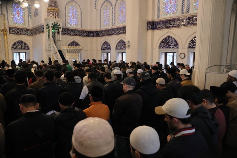 Ramazan Bayramı namazını kılmak için Tokyo Camii'ne akın eden binlerce kişi, cami çevresinde uzun kuyruklar oluşturdu.