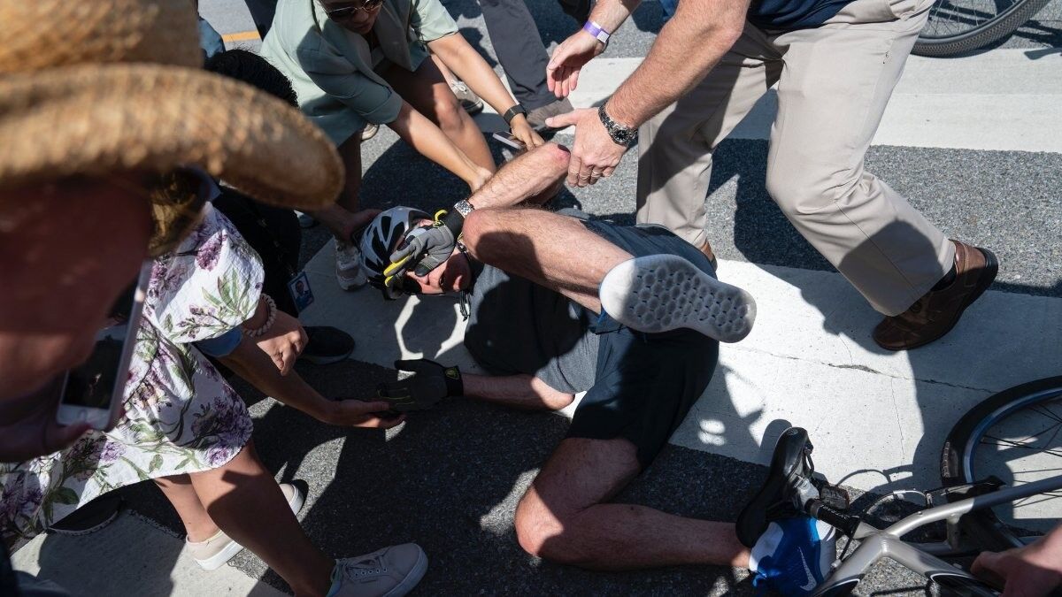 Biden'ın Rehoboth Plajı'ndaki bisikletli turu, yere düşmesiyle sona erdi.
