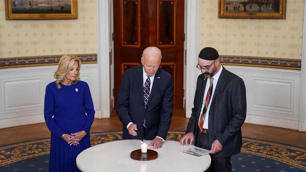 Beyaz Saray'da eşi Jill Biden'la birlikte haham ile dua okuyan Biden'ın görüntüleri de medyaya servis edildi.