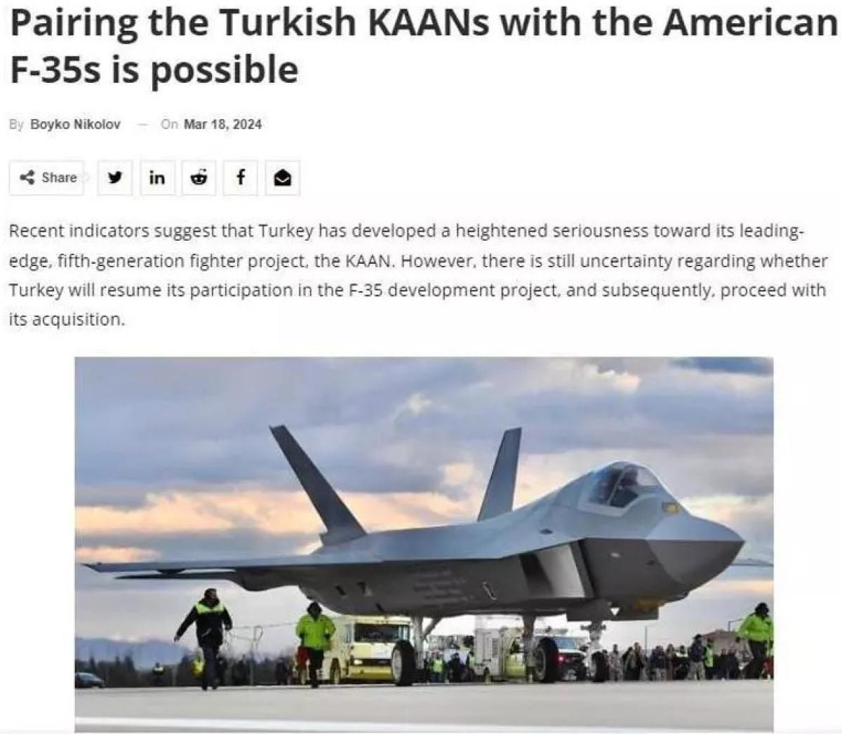 Analizde KAAN'ın F-35 ile rekabet edebileceği belirtilirken, KAAN'ın üretim sayısının ve diğer ülkelere satışlarının artması durumunda Washington'un, Ankara'ya 100 adet F-35 uçağını yeniden vermeyi düşünebileceği ifade edildi.