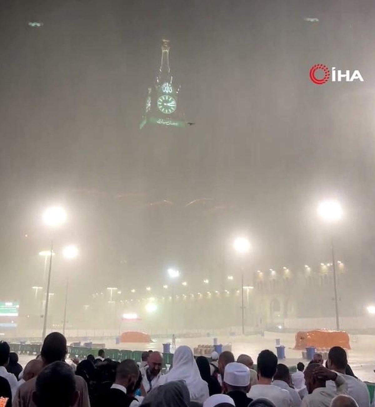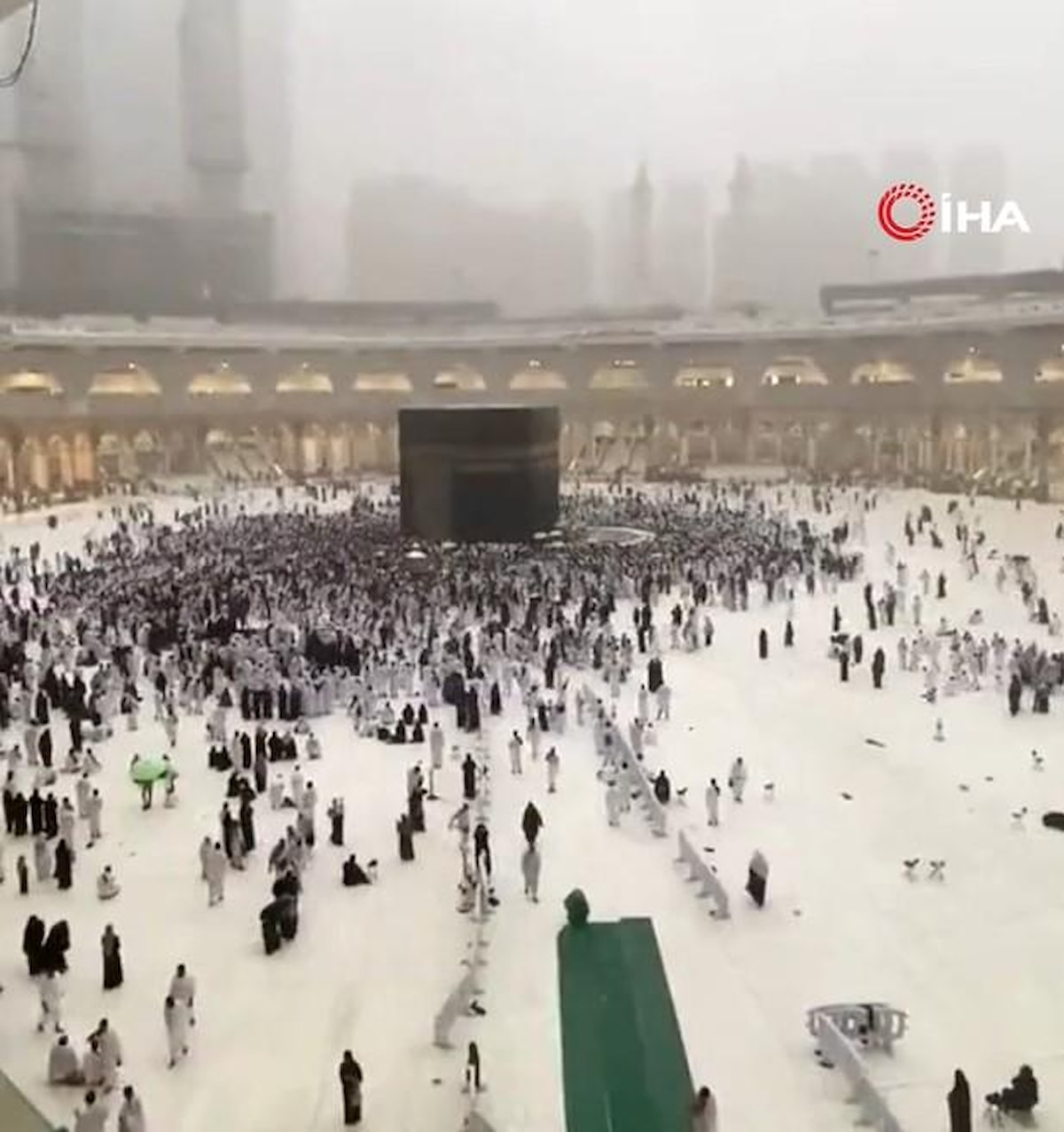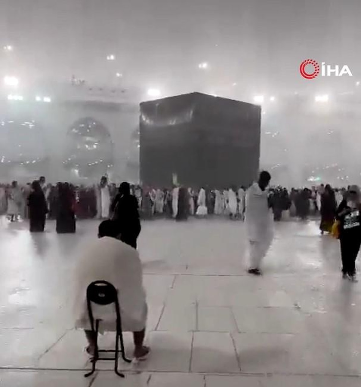 11 ayın sultanı Ramazan'da Kabe'de bir araya gelen binlerce Müslüman ise sağanak yağışa aldırmadan Kabe'yi tavaf etti.