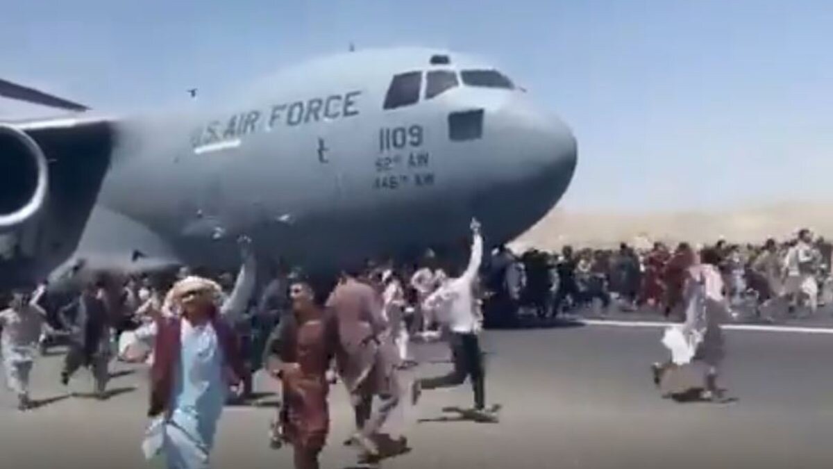 Binlerce insanın pistte ilerleyen uçağı adeta sarıp, koştuğu görüldü. Uçağa tutunmaya ve uygun bölmelere girmeye çalışan Afganlar, bu yöntemle başka ülkelere uçmaya deniyor ancak ölümlü kazalara davetiye çıkarıyor.