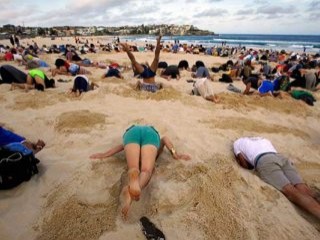 Sidney yakınlarındaki ünlü Bondi sahilinde toplanan 400 kişilik grup, kazdıkları çukurlara kafaları gömerek, Avustralya Başbakanı Tony Abbott ve zirveye katılan hükümet ve devlet başkanlarına, iklim değişikliğinin neden olduğu küresel ısınma ve çevresel etkilere yönelik adım atmaları çağrısında bulundu.