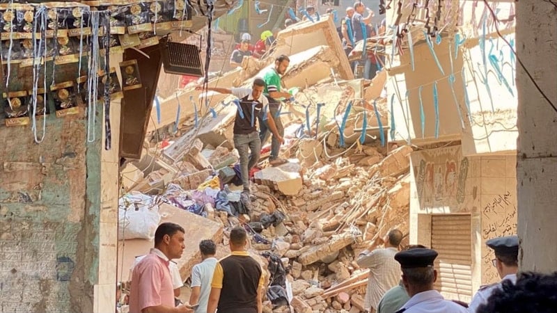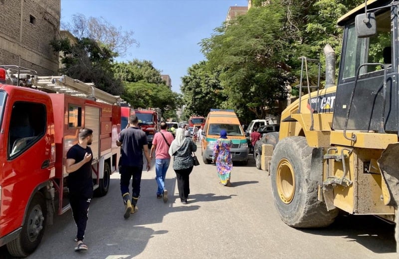 Olay yerine gelen Kahire Valisi Tümgeneral İbrahim Sabre ve Güvenlik Müdürü Tümgeneral Tarık Raşid, bölgede incelemelerde bulundu. Ekiplerin, enkaz altındaki diğer kişilere ulaşmak için çalışmaları sürüyor.