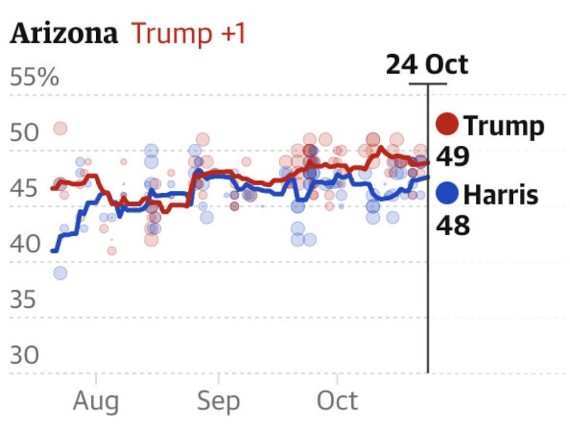 Eyalet bazlı anketlerde, Arizona'da Trump'ın bir puan farkla önde olduğu görüldü.