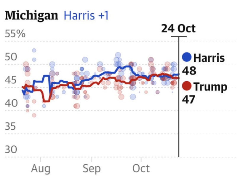 Michigan eyaletinde yapılan ankete göre, Harris bir puan farkla yarışa liderlik ediyor.