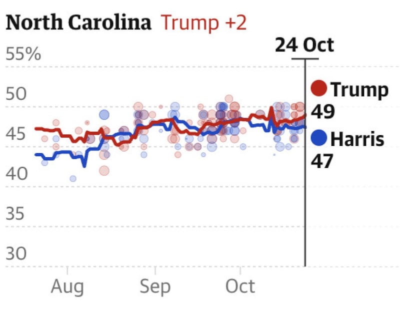 Ankette, North Carolina eyaletinde Trump'ın iki puan farkla önce olduğu açıklandı.