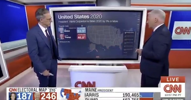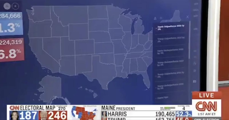 Seçimlere ilişkin oy tablolarını inceleyen CNN Amerika yorumcuları, Demokrat aday Kamala Harris'in bütün illerde Joe Biden'ın 2020 yılındaki seçimlerde aldığı oyun altında kaldığını görünce şaşkınlıklarını gizleyemedi.