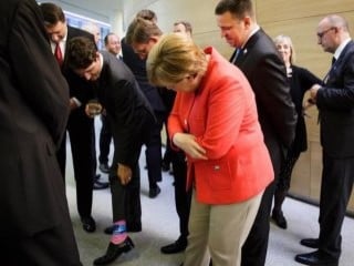 Trudeau'un renkli çorabını gören Almanya Başbakanı Angela Merkel şaşkınlığını gizleyemedi.