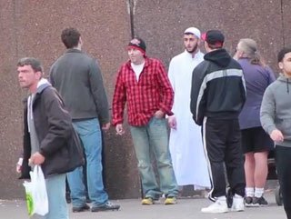 Gençlerden biri özellikle Arapların kullandığı ve Müslümanların yaygın olarak kullandığı uzun beyaz elbiseden giydi. Otobüs durağında bekleyen genç, bir süre sonra diğer arkadaşı tarafından tacize uğradı. Saldırgan rolündeki genç, kendisinin aynı otobüse binemeyeceğini, üzerinde bomba taşıyabileceğini söyledi.