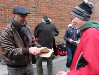 Toronto kentinde yaşayan Türk pizzacı Zeynel Arı, evsizlere pizza ve kışlık giyecek dağıttı.