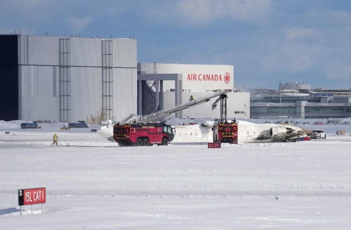 Uçak iniş yaptığı Toronto Pearson Uluslararası Havalimanı'nda ters döndü.
