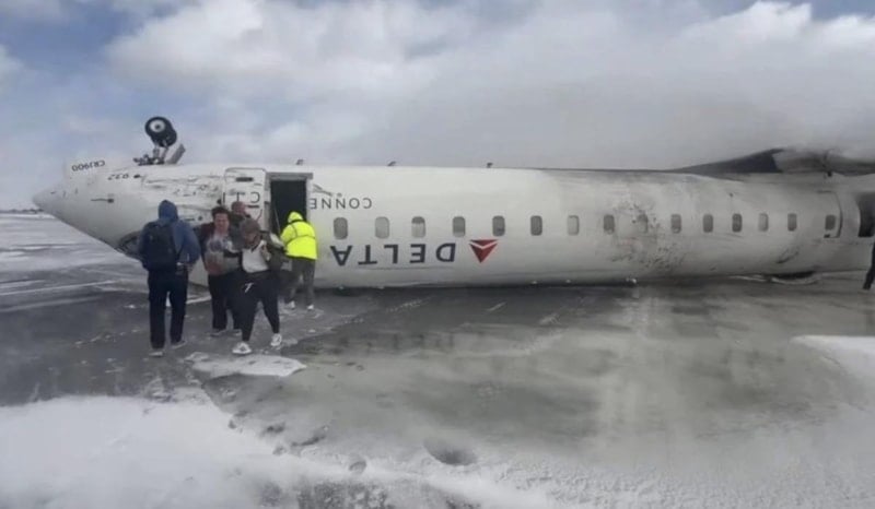ABD’nin Minneapolis kentinden Kanada’nın Toronto kentine sefer yapan Delta Air Lines’a ait yolcu uçağı, iniş yaptığı Toronto Pearson Uluslararası Havalimanı'nda ters döndü.