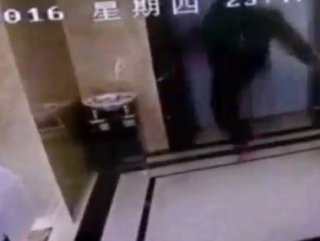 Çin’de sarhoş olduğu öğrenilen bir genç, kız arkadaşıyla birlikte binanın içine girdi. Asansöre doğru yönelen ikiliden erkek olan, kapıyı bir anda tekmelemeye başladı.