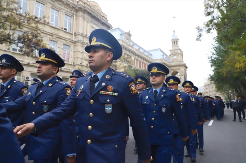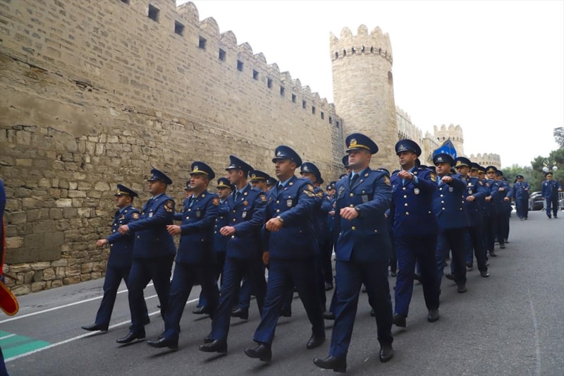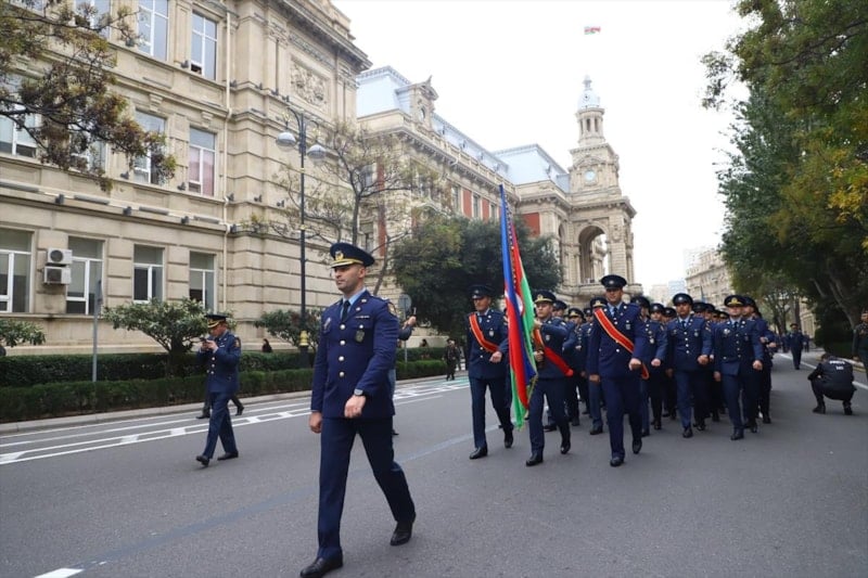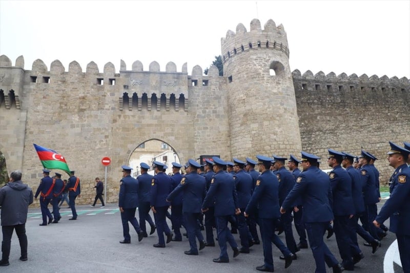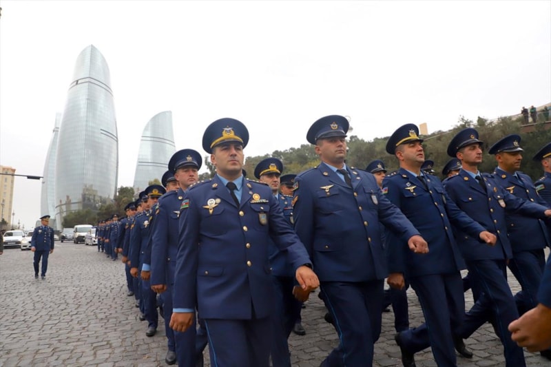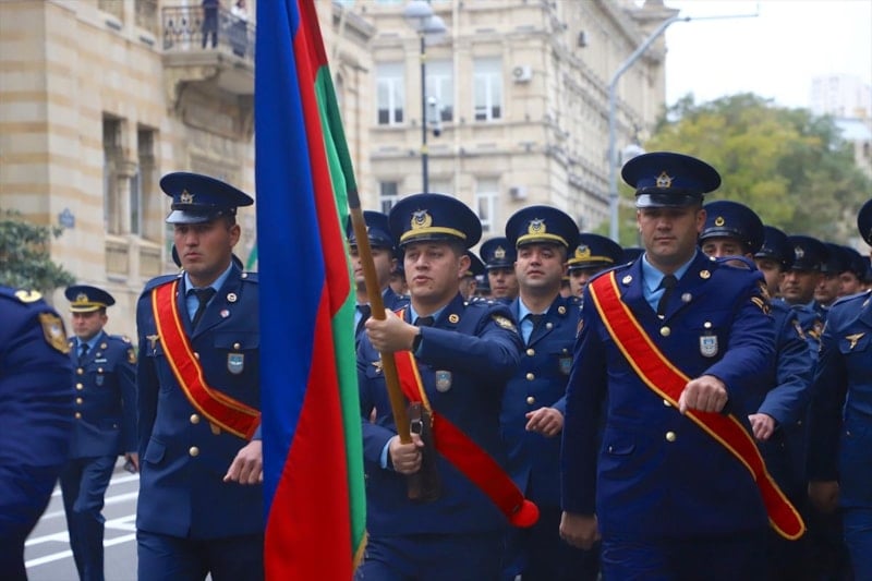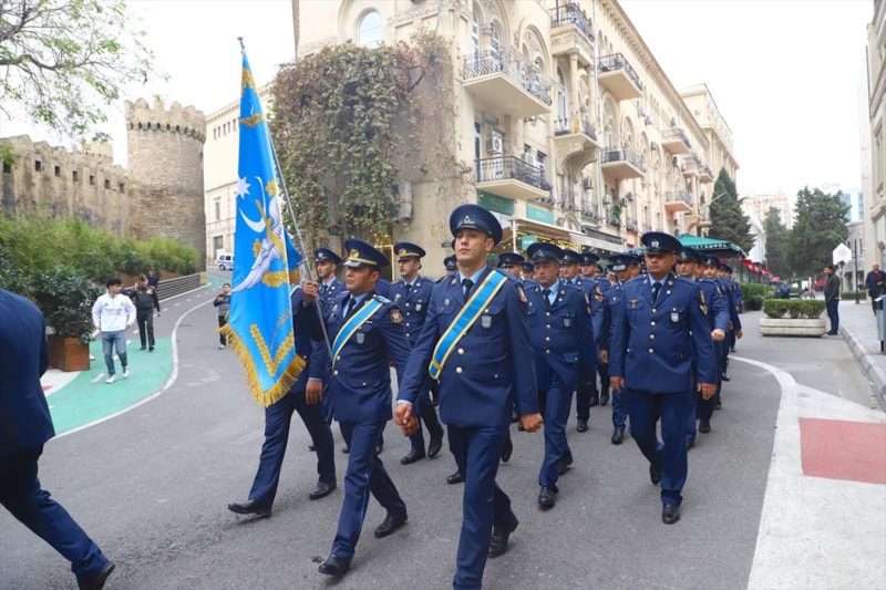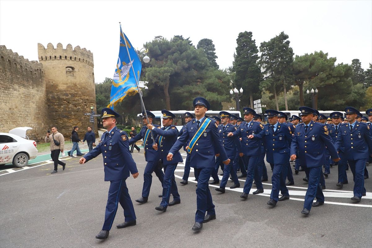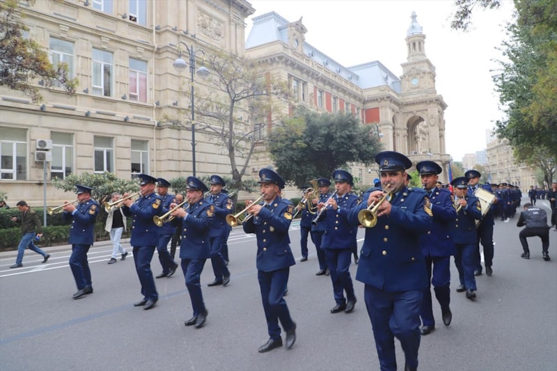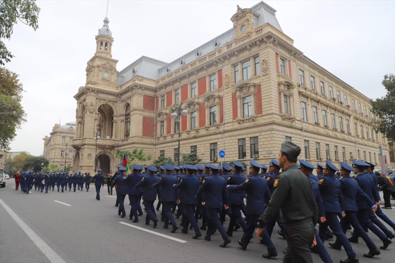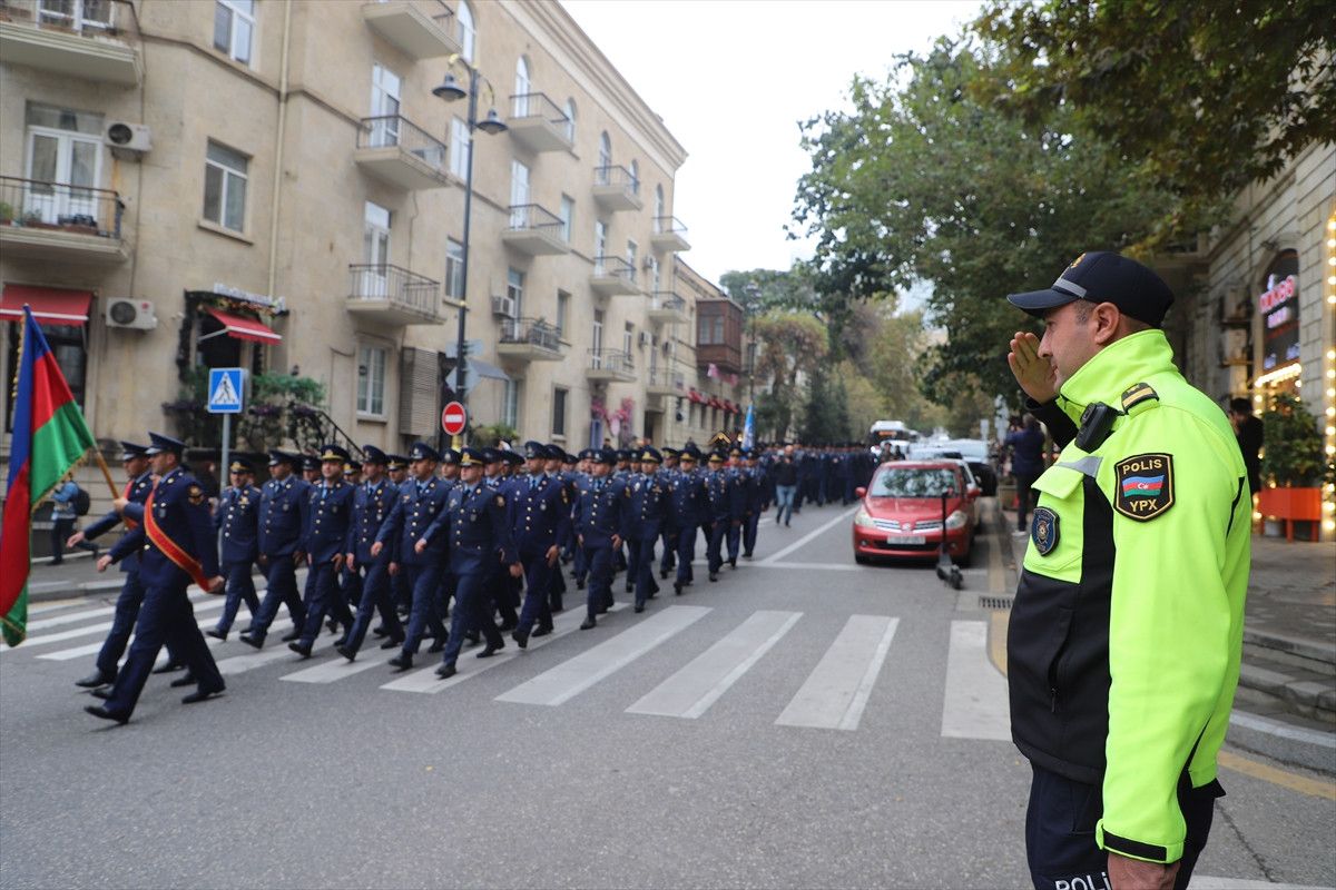 "Zafer Günü" kutlamaları kapsamında Başkent Bakü'nün çeşitli bölgelerinde düzenlenen yürüyüşlere, askeri lise öğrencileri ve Karabağ Savaşı gazileri katıldı.