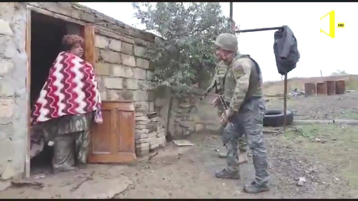 Karabağ'da işgalden kurtarılan köyde Ermeni bir kadınla konuşan Azerbaycan askerinin 'Nerelisin?' sorusu üzerine gelişen diyalog sonucu Ermeni kadın, "Erivanlıyım, burada mağazada çalışıyorum." cevabını verdi.
