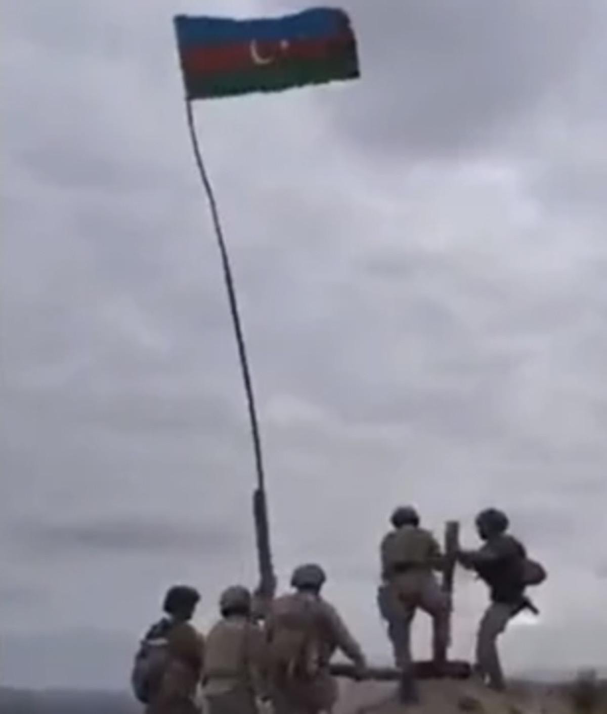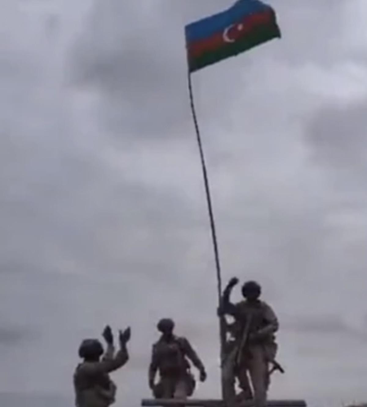 Görüntülerde Azerbaycan askerleri tarafından, Ermeni gruplardan temizlenen kritik tepelere Azerbaycan bayrağı asıldığı görüldü.