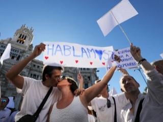 Madrid hükümeti ile Barselona özerk yönetimi arsaındaki bağımsızlık tartışması giderek büyüyor. İsanyol yönetiminin gündeminde askeri müdahale dahi bulunurken Barselona'da bulunan Katalanlar "konuşalım" temalı bir eylem yaptı.