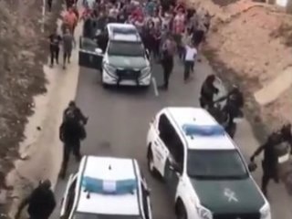 Katalonya'da halkın polisleri püskürtmesi-İZLE