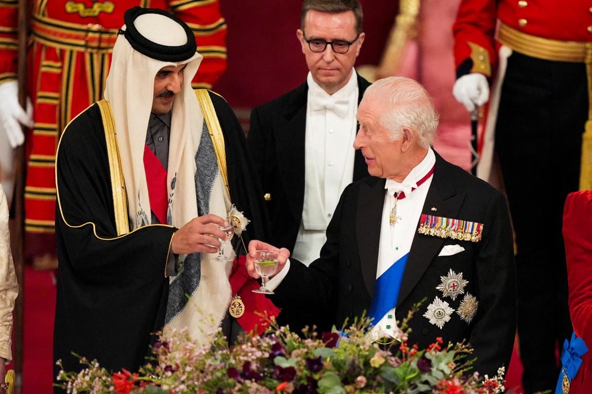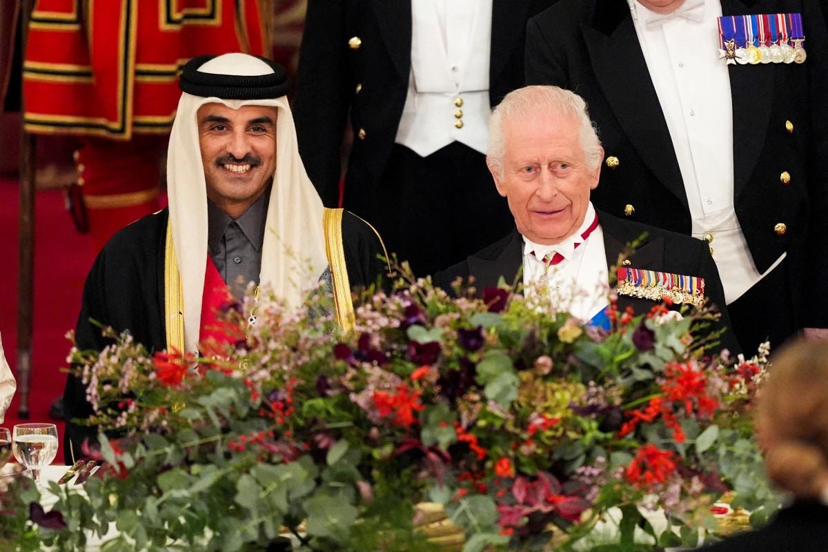 Buckingham Sarayı'nda Devlet Ziyafeti veren Kral Charles, Katar Emiri Al Sani'ye Arapça hitap etmesi ise dikkat çekti..
