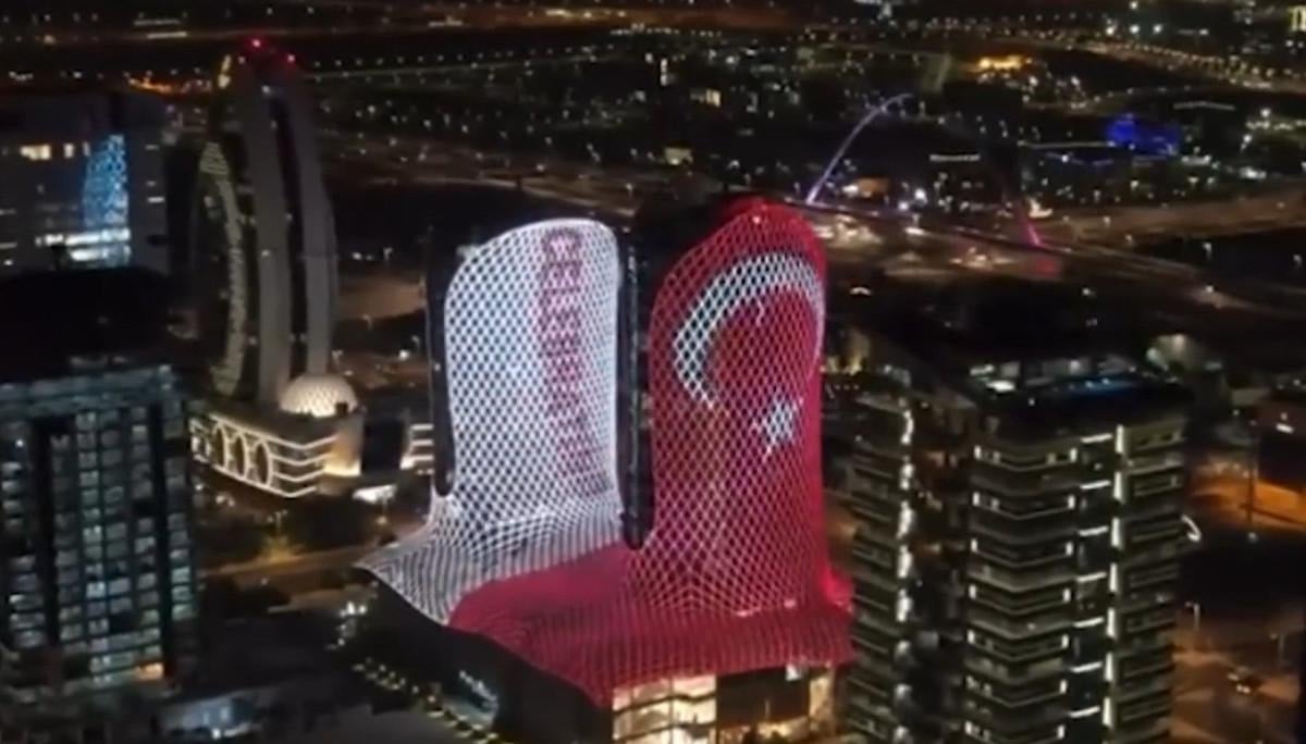 Katar'da önemli binalar Türkiye Cumhuriyeti'nin kuruluşunun 100. yılı dolayısıyla Türk bayrağı renkleriyle ışıklandırıldı.
