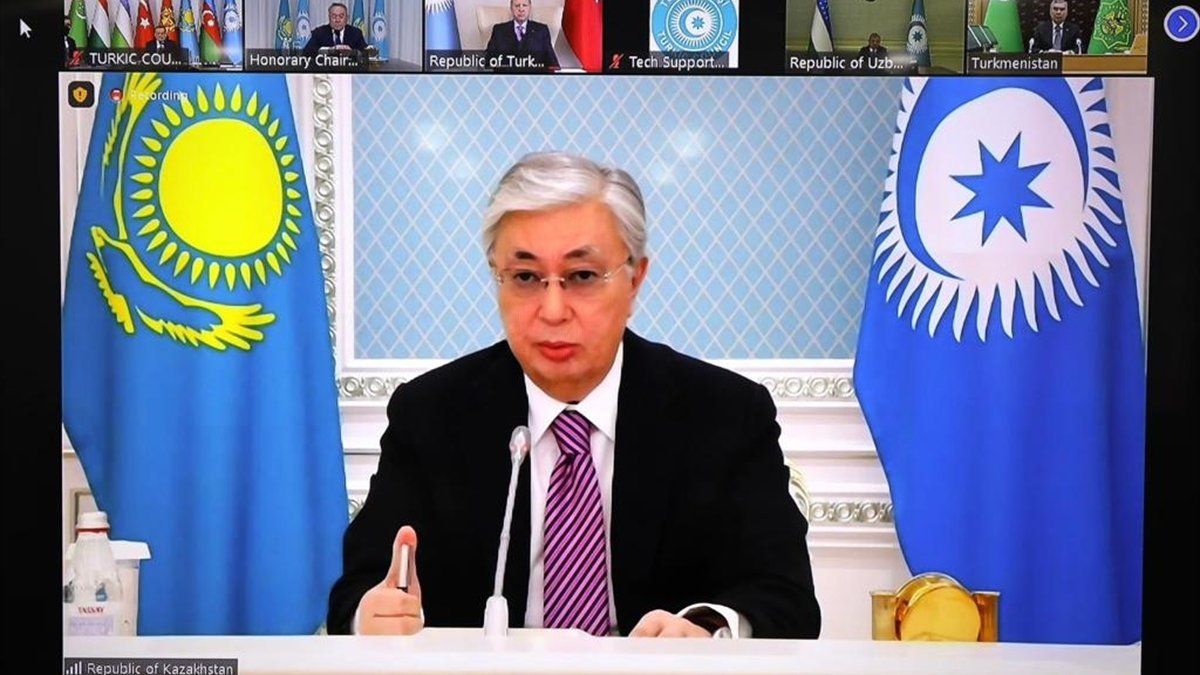 Kazakistan Cumhurbaşkanı Kasım Cömert Tokayev, koronavirüs salgını nedeniyle çevrim içi yapılan Türk Konseyi Devlet Başkanları Gayri Resmi Zirvesi'nde konuştu.
