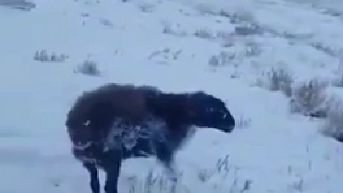 Almatı bölgesindeki Zhansugurov köyünde tarlaya giren bir koyun ve iki köpek, donarak can verdi.