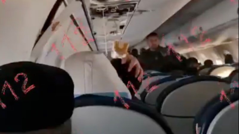 Görevlilerin yolcuları sakinleştirmek için sık sık anons yaptıkları görüntülerde, kabin görevlisinin "Herkes kemerini bağlasın, her şey yahşi olacak" sözleri de kayda yansıyor.