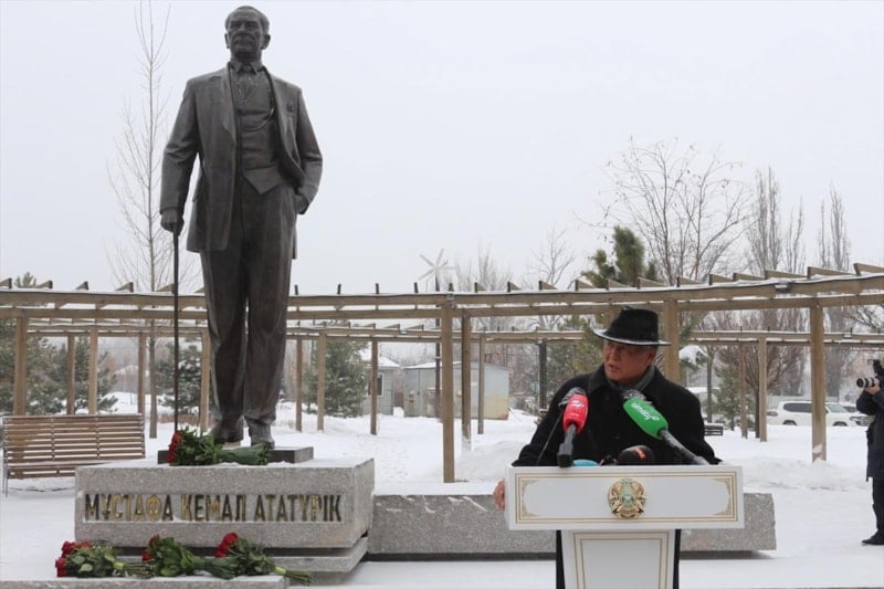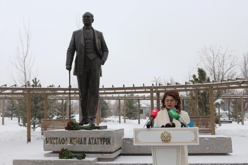 Kazakistan Kültür ve Enformasyon Bakanı Balayeva, törende yaptığı konuşmada, Cumhurbaşkanı Kasım Cömert Tokayev’in, Cumhurbaşkanı Recep Tayyip Erdoğan’ın ülkeyi ziyareti sırasında Türkiye Cumhuriyeti’nin 100. yılı dolayısıyla Almatı’da Mustafa Kemal Atatürk'ün heykelinin dikilmesi yönünde talimat verdiğini söyledi.